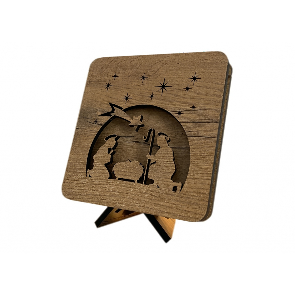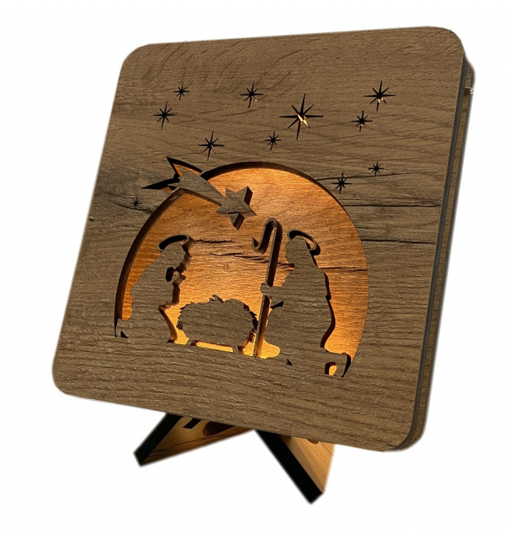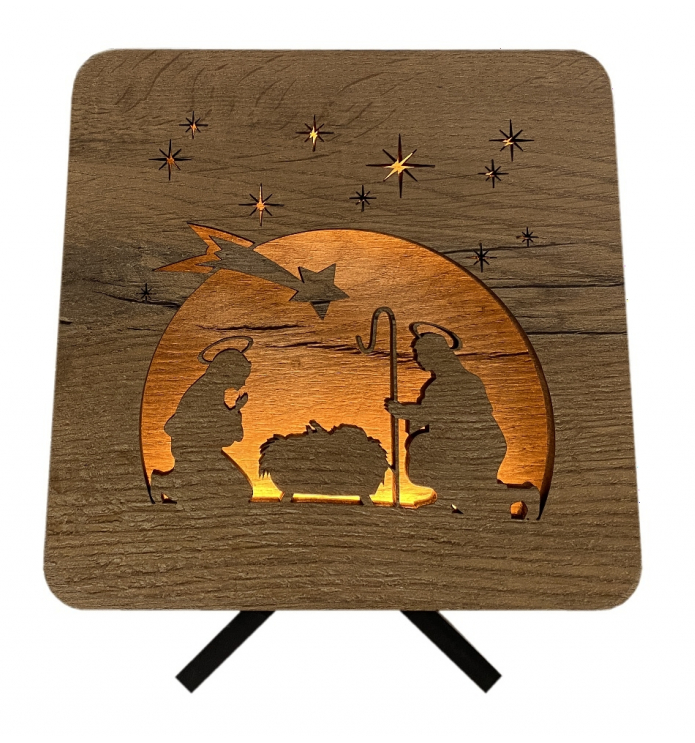 Cuadro-Lámpara de mesita LED con motivo retro-iluminado extra cálido en la parte frontal y luz blanca cálida directa (potente) en la parte posterior. La lámpara está equipada con LED y se alimenta mediante un adaptador de voltaje externo de 12 V conectado a un enchufe. Ofrecemos una garantía de 5 años para la fuente de luz.