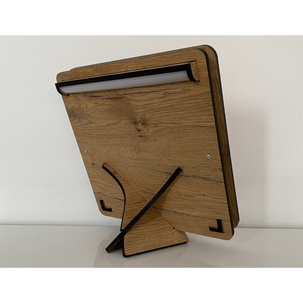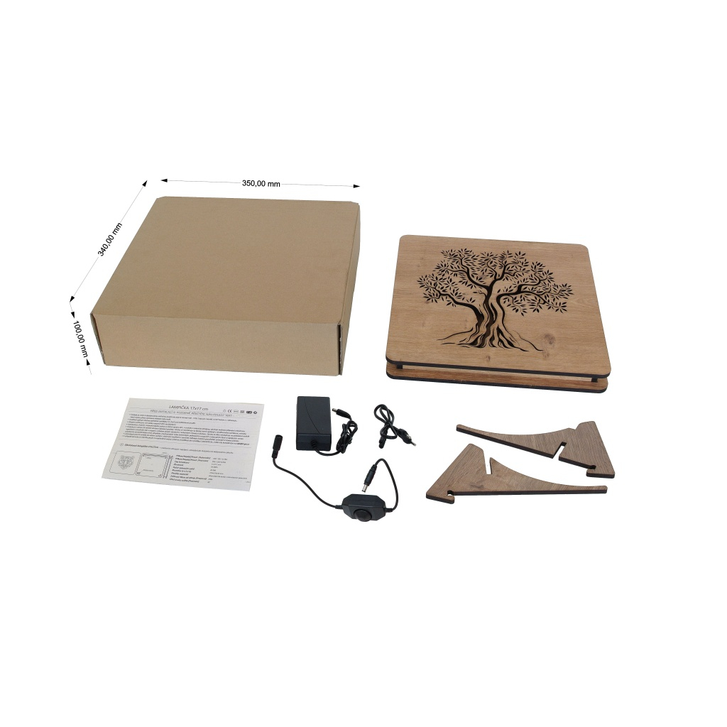 La lamparita está hecha a mano de forma artesana, usando tablero de fibra de maderas que convierten cada pieza en una obra irrepetible.